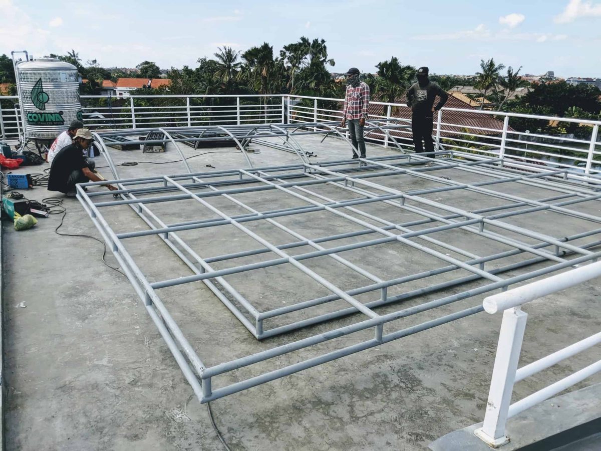 Since ours will be a roof arbor, we must bring planter boxes and soil about 13 meters from the ground. And we need about 30 concrete planter boxes.