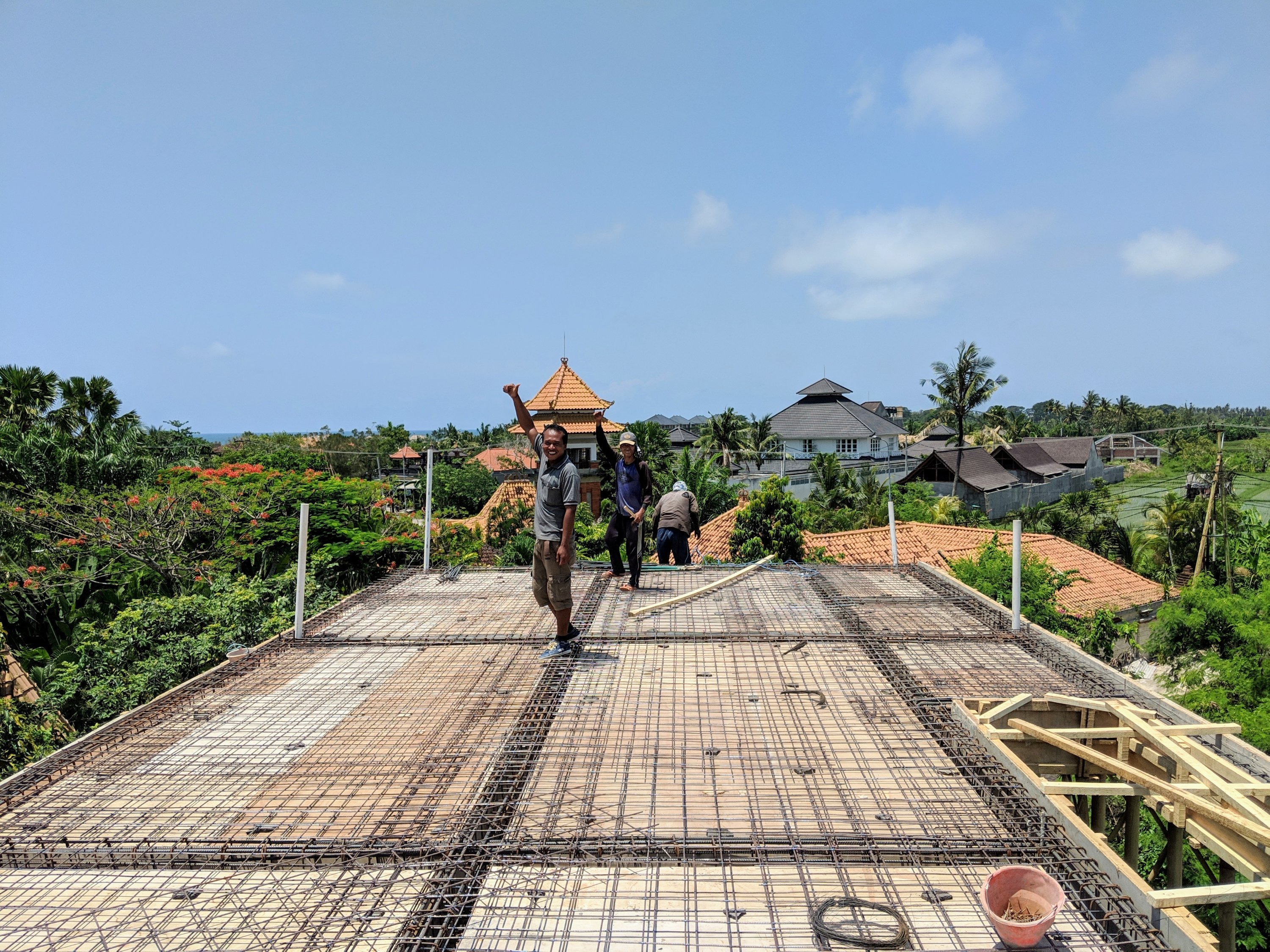 Photo: Our foreman Wayan and a worker doing a thumbs-up.