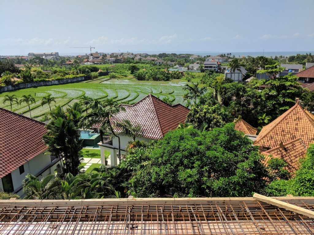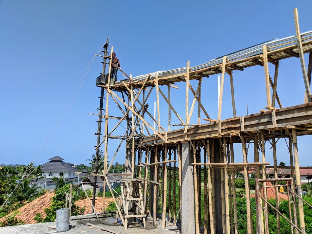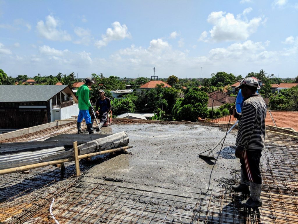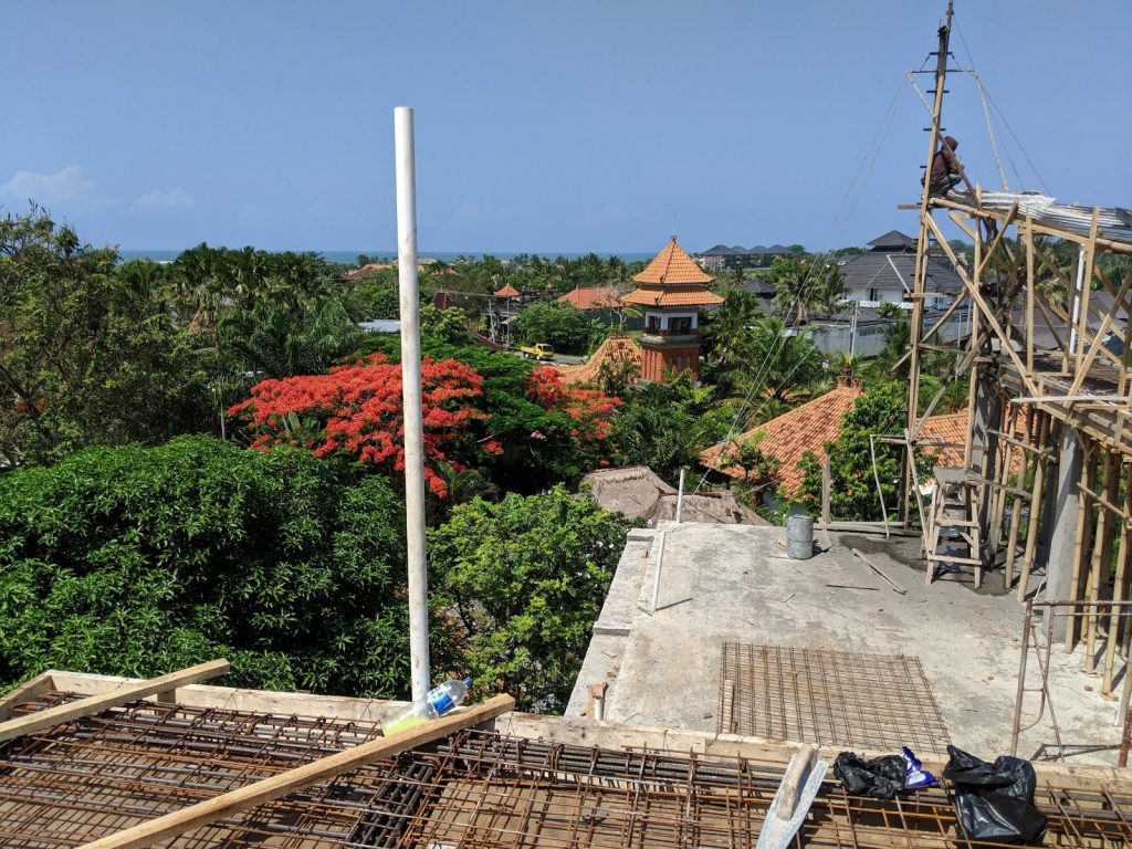 The final concrete pour for the roof above the guest units was completed today. It was an amazing feeling to be standing 11 meters (33 feet) above the ground, where a year earlier I hired a drone photographer to show me what I saw today with my own eyes.