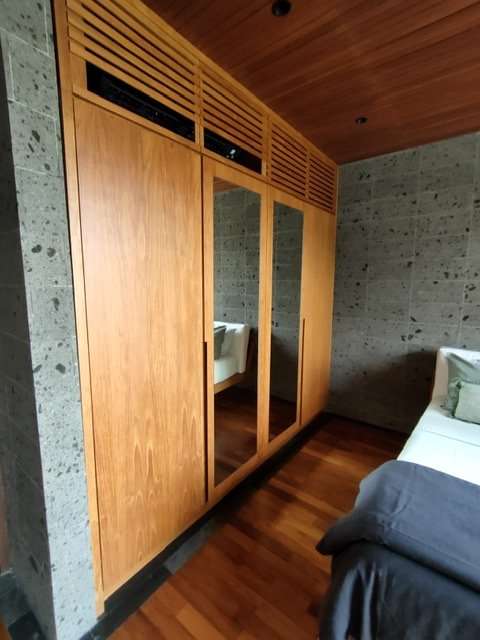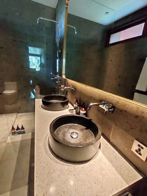 Dornier’s consistent use of stone tile and wood throughout the massive villa gives The River House its subdued aesthetic. Grey and neutral tones convey a Zen-like ambiance that fits so naturally with Bali’s peaceful vibe.